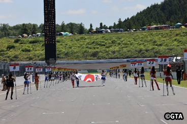 ツインリンクもてぎのコース上でスタート待つ各チームのGTマシン